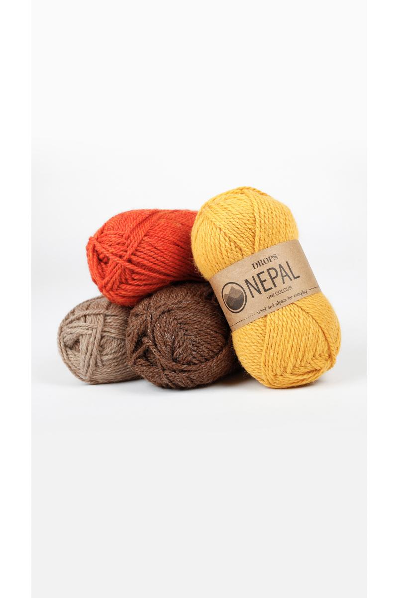 DROPS Nepal er et deilig og tykt luksusgarn spunnet i 35% superfin alpakka og 65% Peruvian Highland ull. Fibrene er ubehandlet, det betyr at de kun er vasket og ikke utsatt for kjemisk behandling før farging. Dette fremhever best garnets naturlige egenskaper.