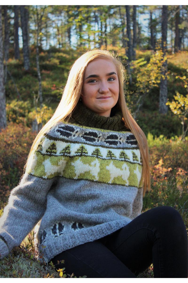 Dette mønsteret er kun tilgjengelig hos GarnPrat. Etter at du har valgt hva din garnpakke skal inneholde av farge og størrelse, kan du få kjøpe mønsteret til Femundsmarka Elg Hvit.