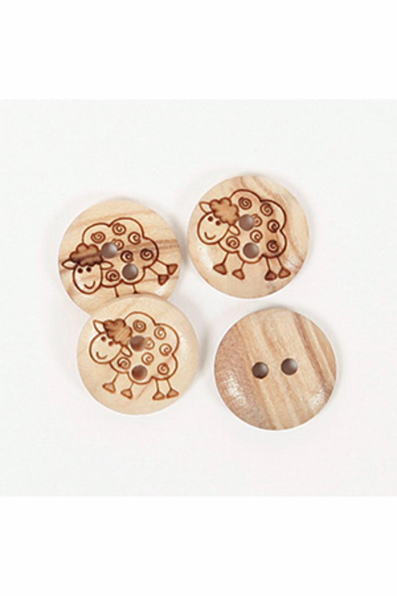 Dekorative knapper av oliventræ med inngravert sau.
