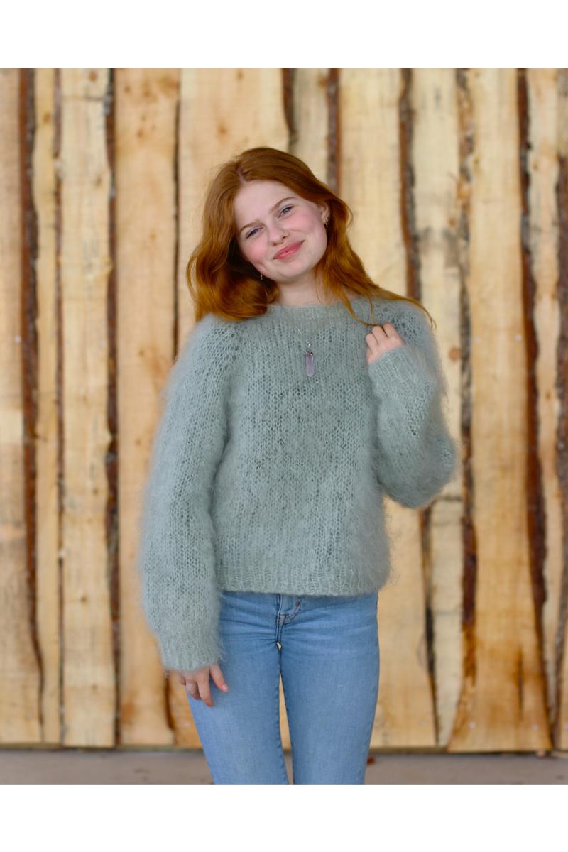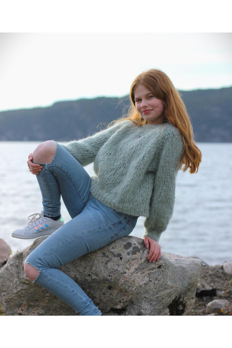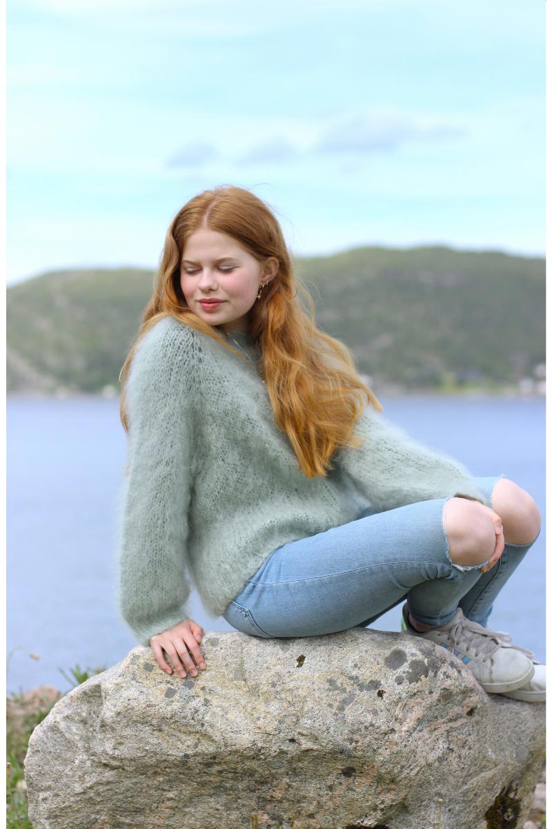 En varm hilsen til 80-tallet. Vi var så fine, i våre Mohair gensere Noen var i flere herlige farger og andre hadde vi i en farge. Nå er disse herlige genserne tilbake for fullt, så da fikk jeg lyst til å designe en genser i Rauma Tjukk Mohair Superenkelt mønster, så alle kan ta fram tykke strikkepinner og strikke denne i en fei. På 80-tallet var det mange av oss som børstet opp Mohair genserene våre med hårbørste, da ble de ekstra fine syntes vi. For meg er dette nostalgi, romantisk og en smule gøy…da mine gensere ble børstet litt hver dag. Hadde draget da ja