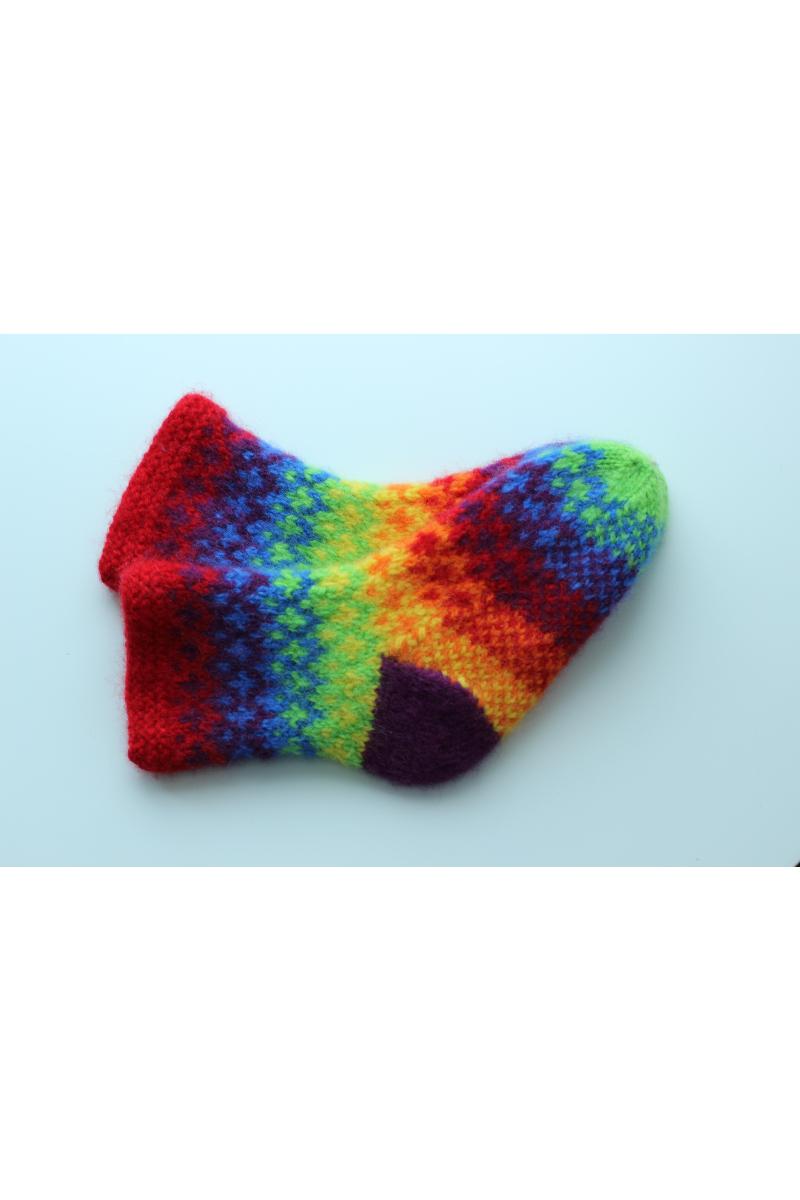 Superkule og fargerike tovede sokker. Alle vil elske disse! Sokkene er laget i dame og herrestørrelse, men ønskes de mindre, så kan de toves litt mere.