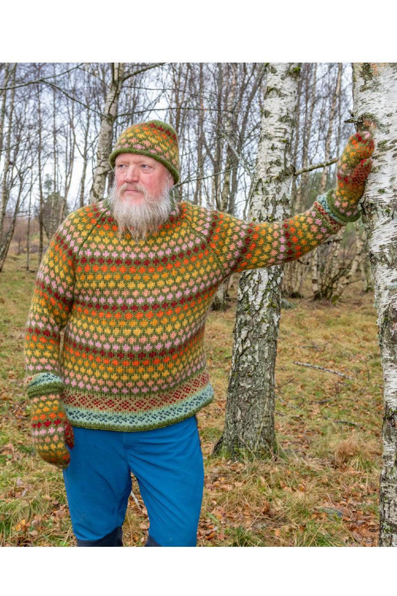 Med meg hjem hadde jeg hodet fullt av farger. Det ble utgangspunktet for mønstrene «Høst i skogen»