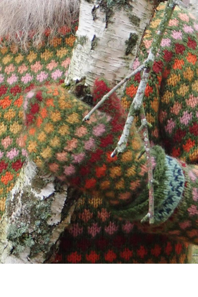 Med meg hjem hadde jeg hodet fullt av farger. Det ble utgangspunktet for mønstrene «Høst i skogen»